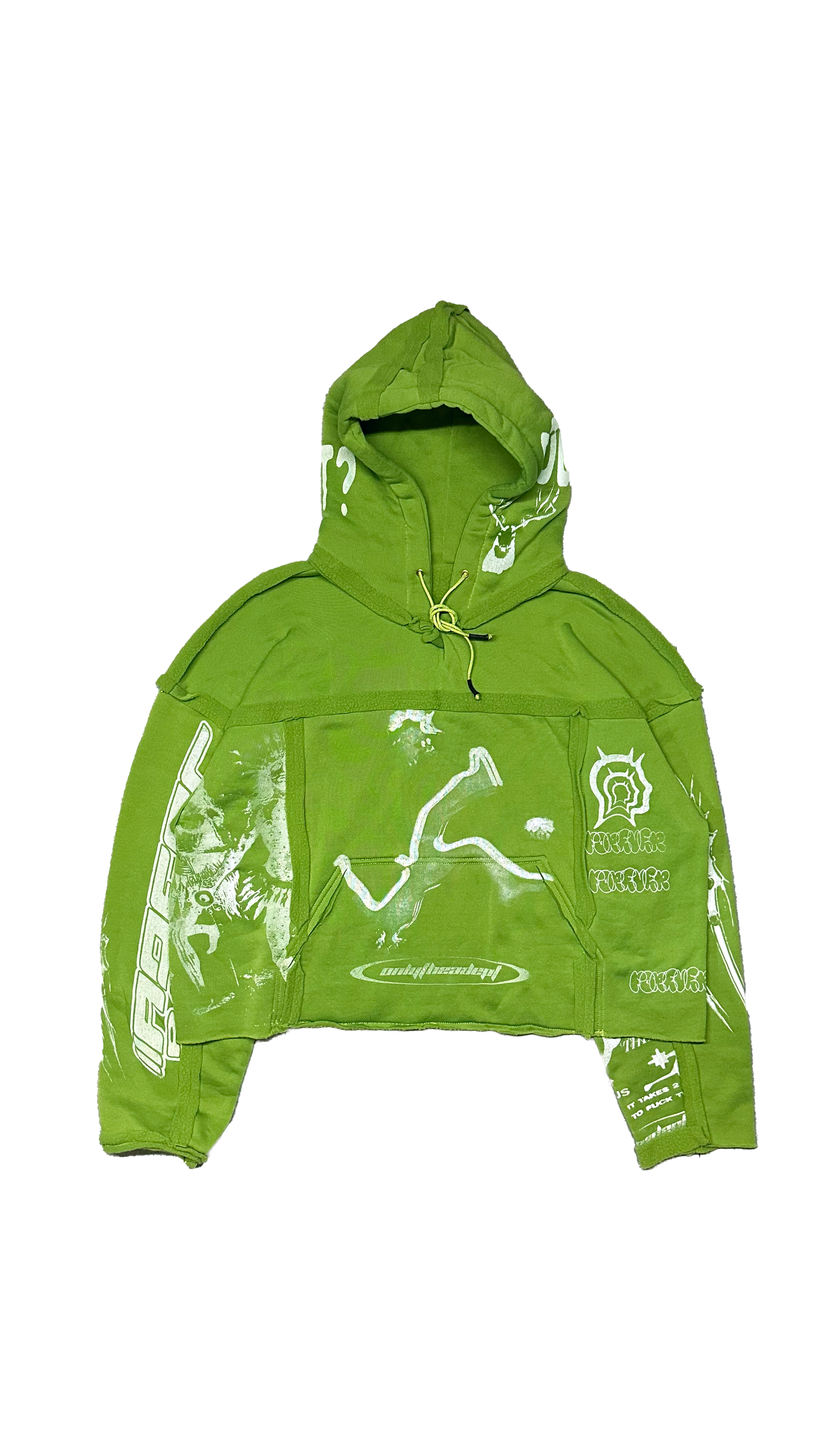 Boxy fit with external seams and an oversized hood. Finished with custom screen printing.